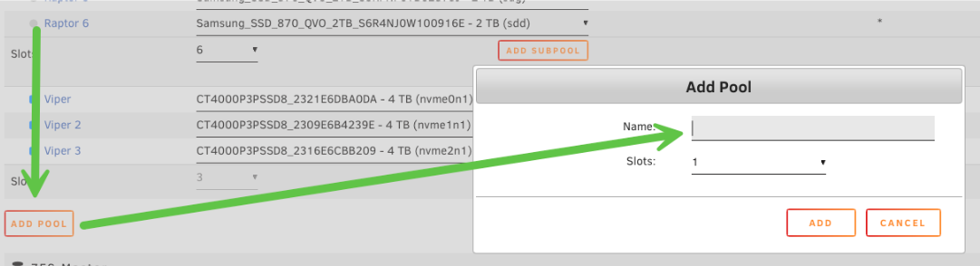 • Haz clic en el nombre del pool (por ejemplo, raptor) para abrir su configuración.
